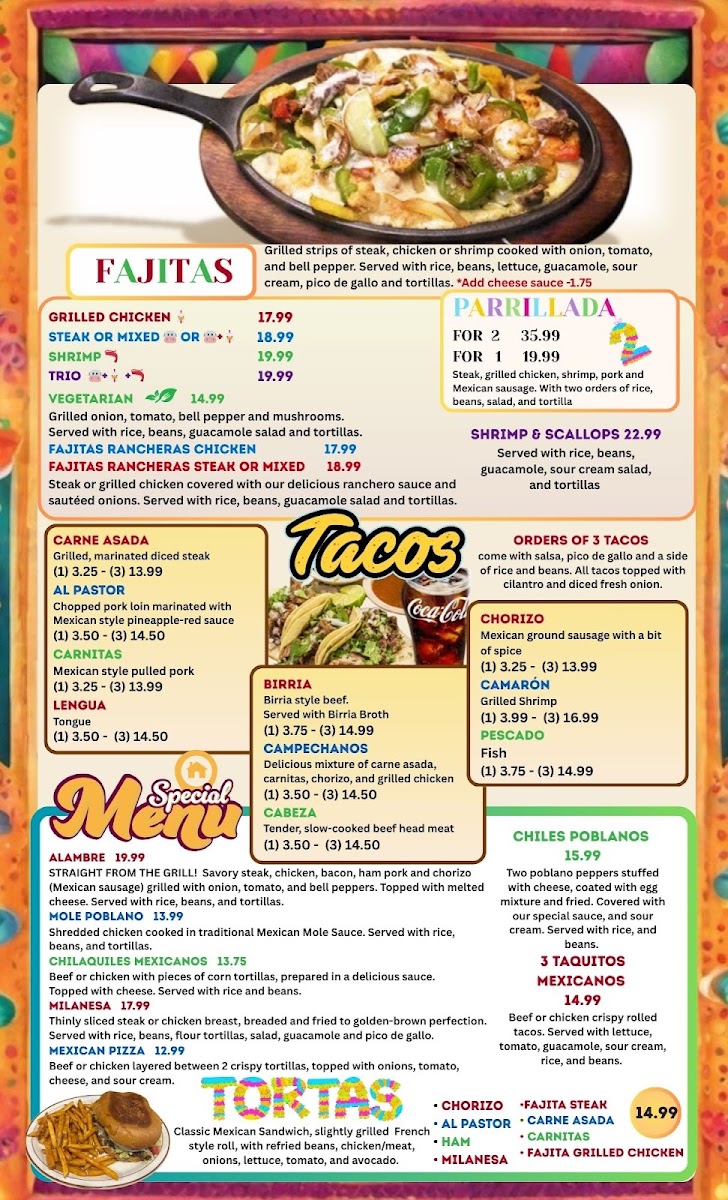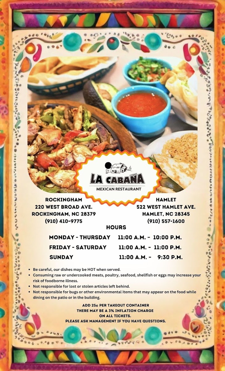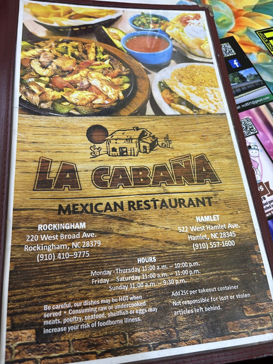 If you’re craving bold flavors and comforting classics, the La Cabana Mexican Restaurant - Hamlet Menu is where things get exciting. Tucked along Hamlet Ave in Hamlet, North Carolina, this spot brings together all the Mexican favorites you’d hope to see, and then some. From sizzling fajitas that arrive at the table still steaming to cheesy enchiladas covered in rich sauce, every section of the menu feels packed with options worth trying.
